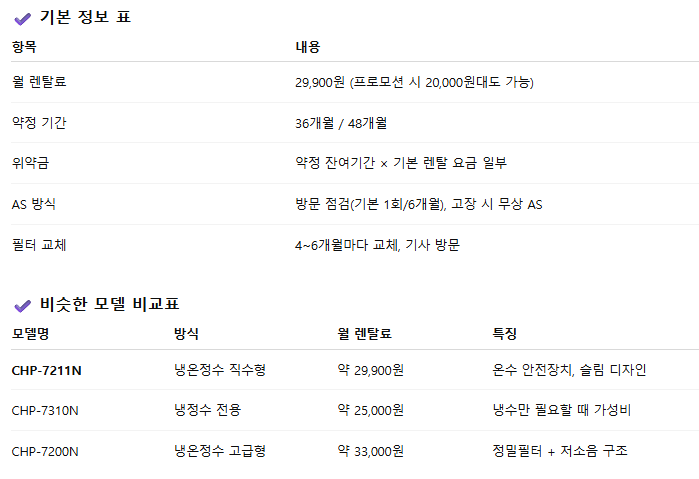 CHP-7211N 정수기 렌탈 후기 – 구매 vs 렌탈, 어떤 선택이 더 유리할까?